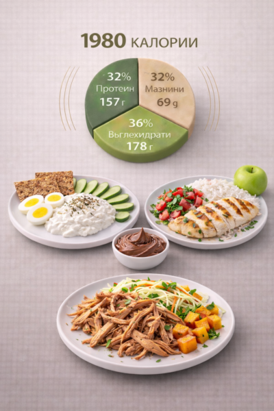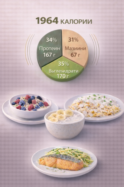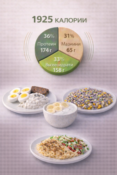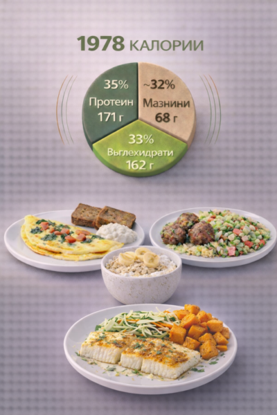 2000 kcal дневно — подходящо за по-активни трениращи хора и поддържане на тегло.