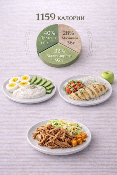 1150 kcal дневно, подходящо за ефективно и устойчиво отслабване.