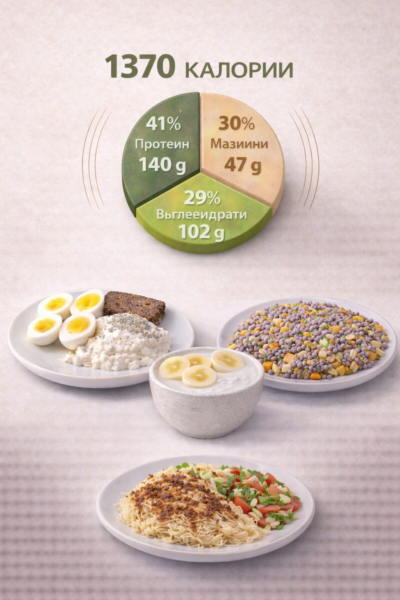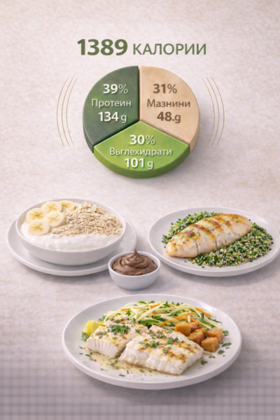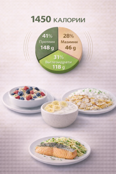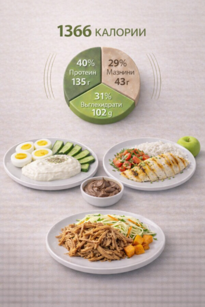 1400 kcal дневно — подходящо за умерено отслабване, или поддържане на тегло.